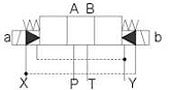 При электрогидравлическом управлении в качестве управляющего золотника используется 4WE6 J (34 сх) для трехпозиционных распределителей, 4WE6 D (574 сх) для двухпозиционных (кроме схем с двухсторонним управлением).